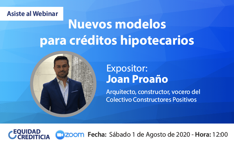 Nuevos modelos para créditos hipotecarios por Equidad Crediticia OL | Jul 31, 2020 | Webinar Puedes asistir al Webinar del día Sábado 1 de julio del 2020 a las 12:00 pm vía Zoom Tema: Nuevos modelos para créditos hipotecarios Expositor: Arquitecto Joan Proaño, constructor vocero del Colectivo Constructores Positivos Este contenido es exclusivo para usuarios registrados para continuar leyendo INICIA SESIÓN o crea tu cuenta gratuita haciendo CLICK AQUÍ Equidad Crediticia OL Enviar comentario Cancelar la respuestaLo siento, debes estar conectado para publicar un comentario.